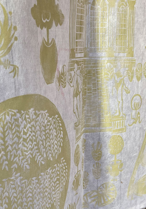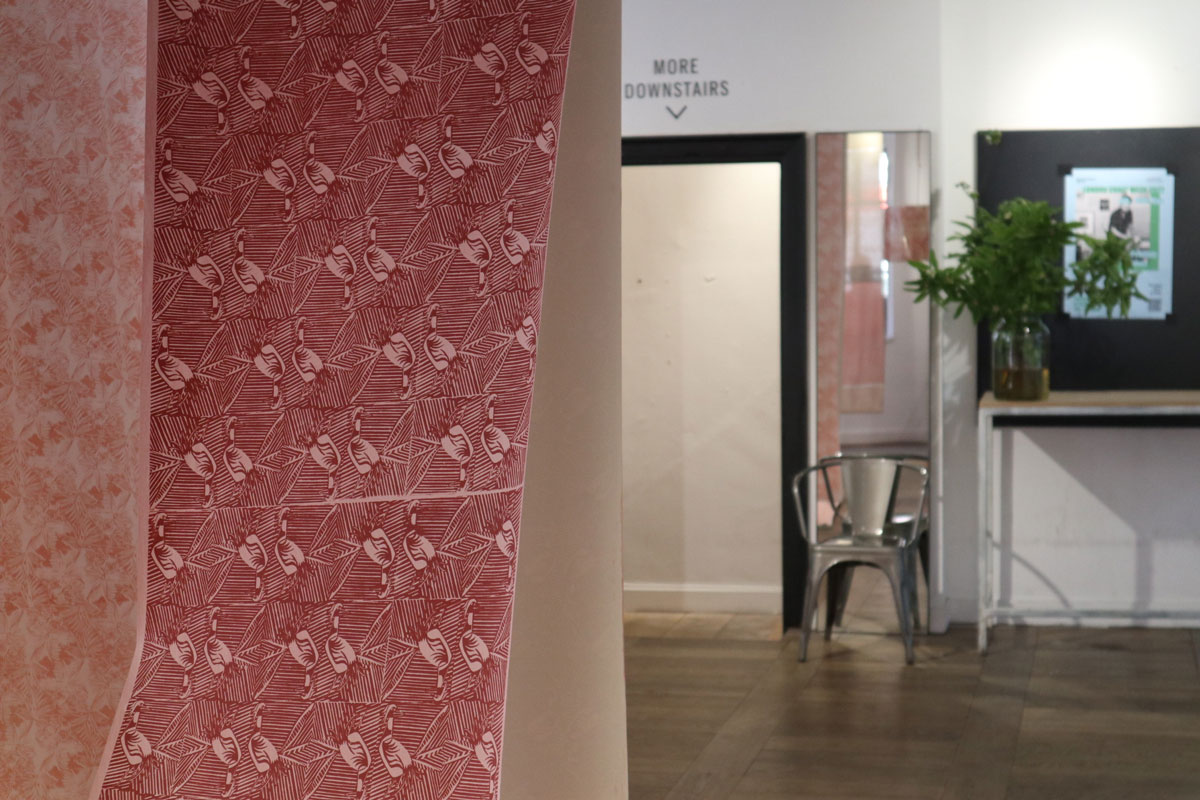 Artist printmaker Nicholas Hughes will be popping up and printing down his bespoke hand made wallpapers in a live two day demonstration print marathon.